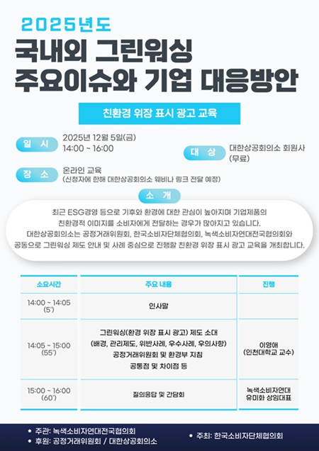 ○ 행사 주요 키워드 : 그린워싱(환경 위장 표시 광고) 제도 , 공정거래위원회 등 지침
